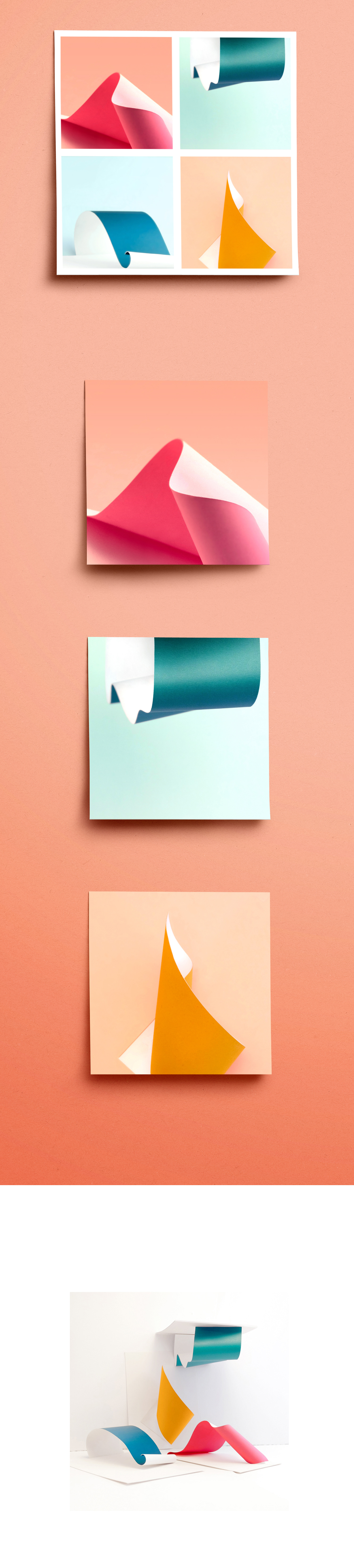 Earth, air, water and fire, crafted from four 7x14 cm strips of paper.